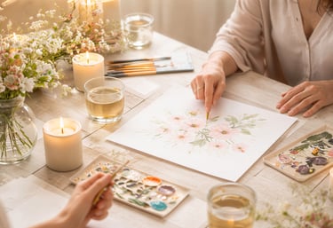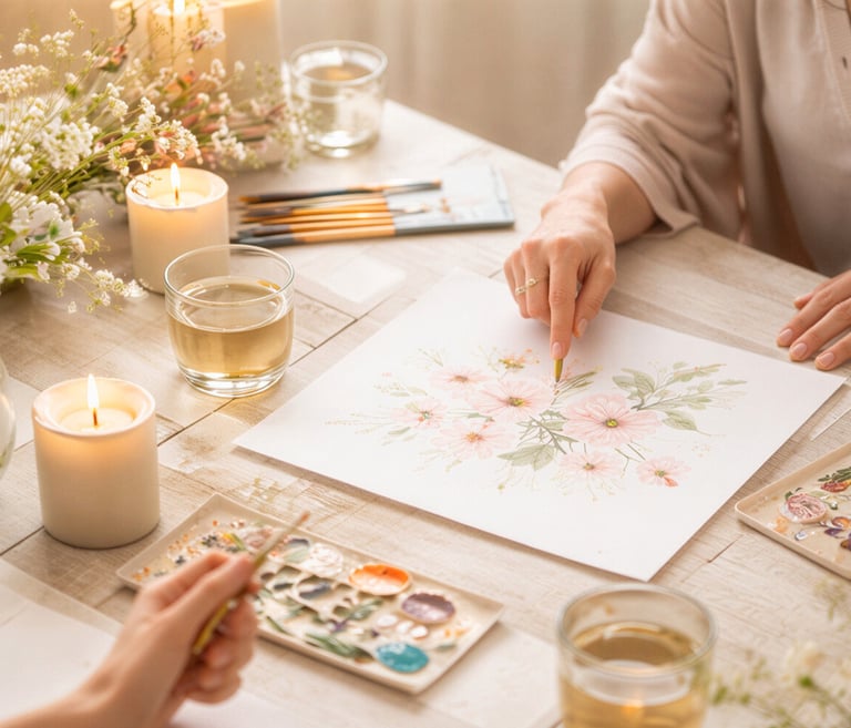 Les ateliers se déroulent en petits groupes de 4 à 5 personnes, conçus comme une expérience créative et apaisante.