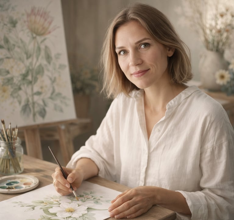 Mon travail explore la délicatesse des fleurs, la transparence de l’eau et les gestes simples de la peinture. À travers mes œuvres et les ateliers Flowa, je souhaite créer des moments de calme, d’observation et de créativité.
